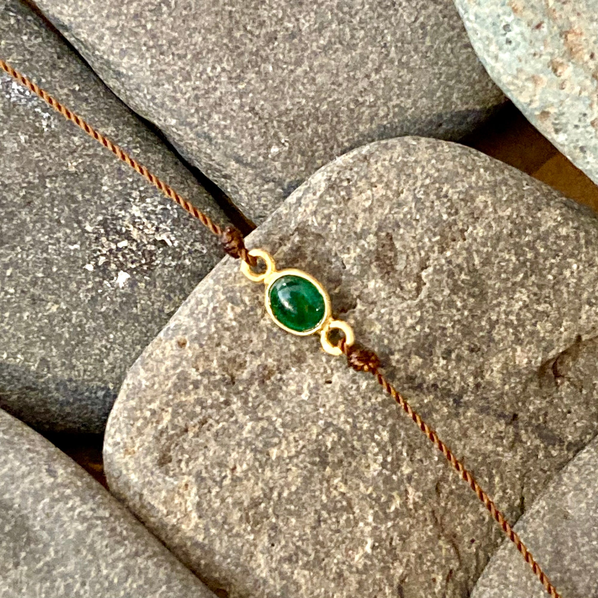 One of a Kind Emerald Cabochon 18K Gold Bracelet