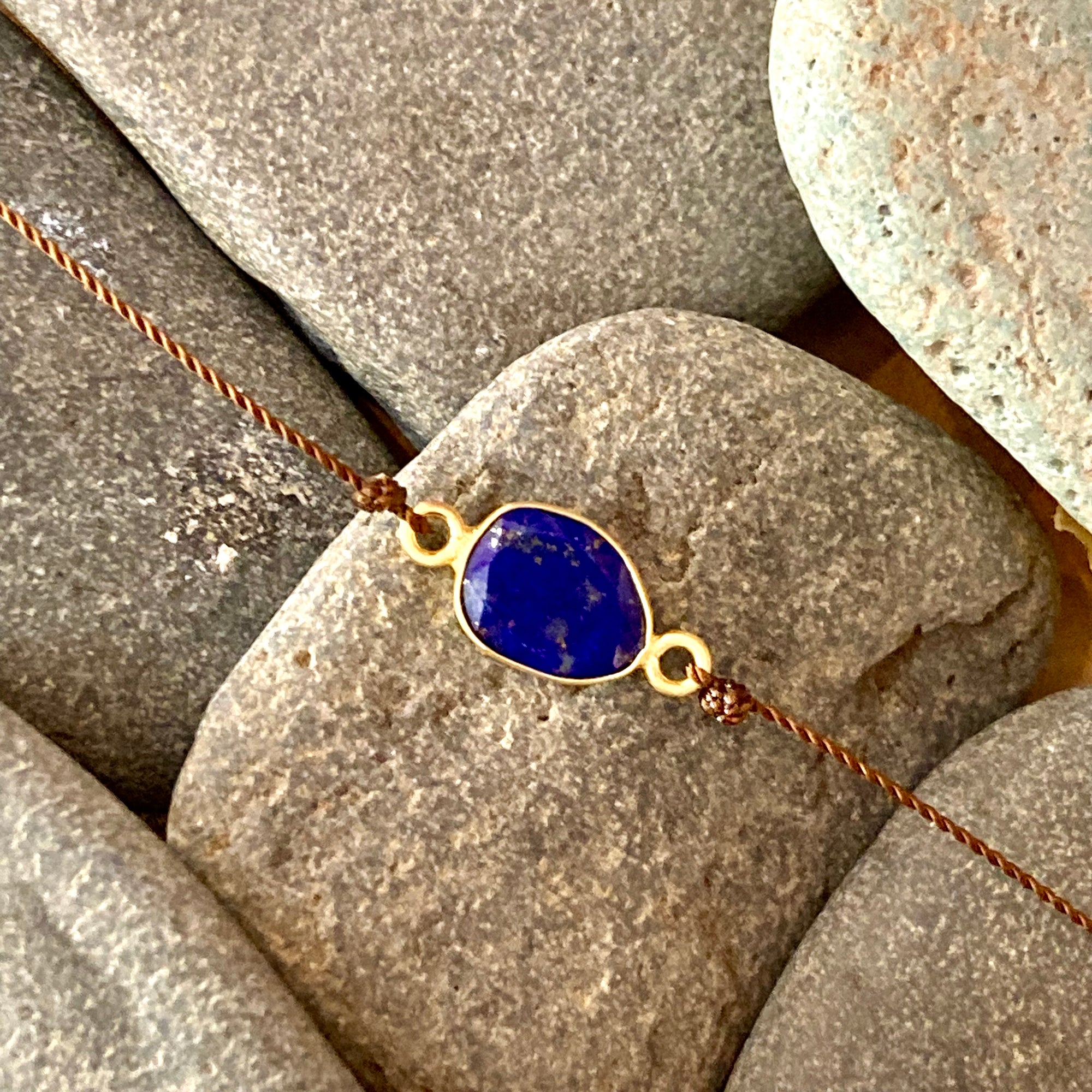 This designer collects uniquely beautiful, faceted stones and allows the natural beauty of the stone to take center stage by framing it in 18K gold and then stringing the stone simply on micro knotted nylon cord with a 14K gold lobster clasp.