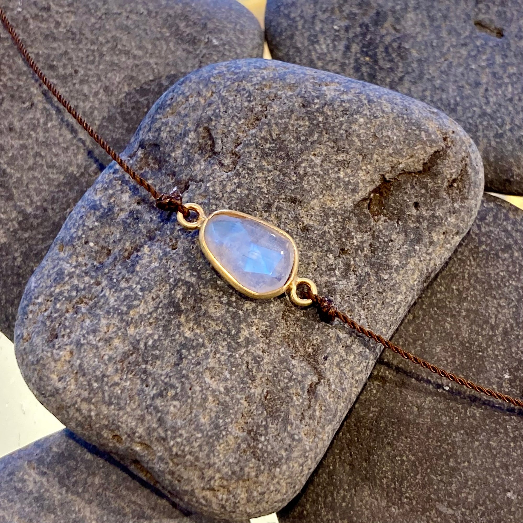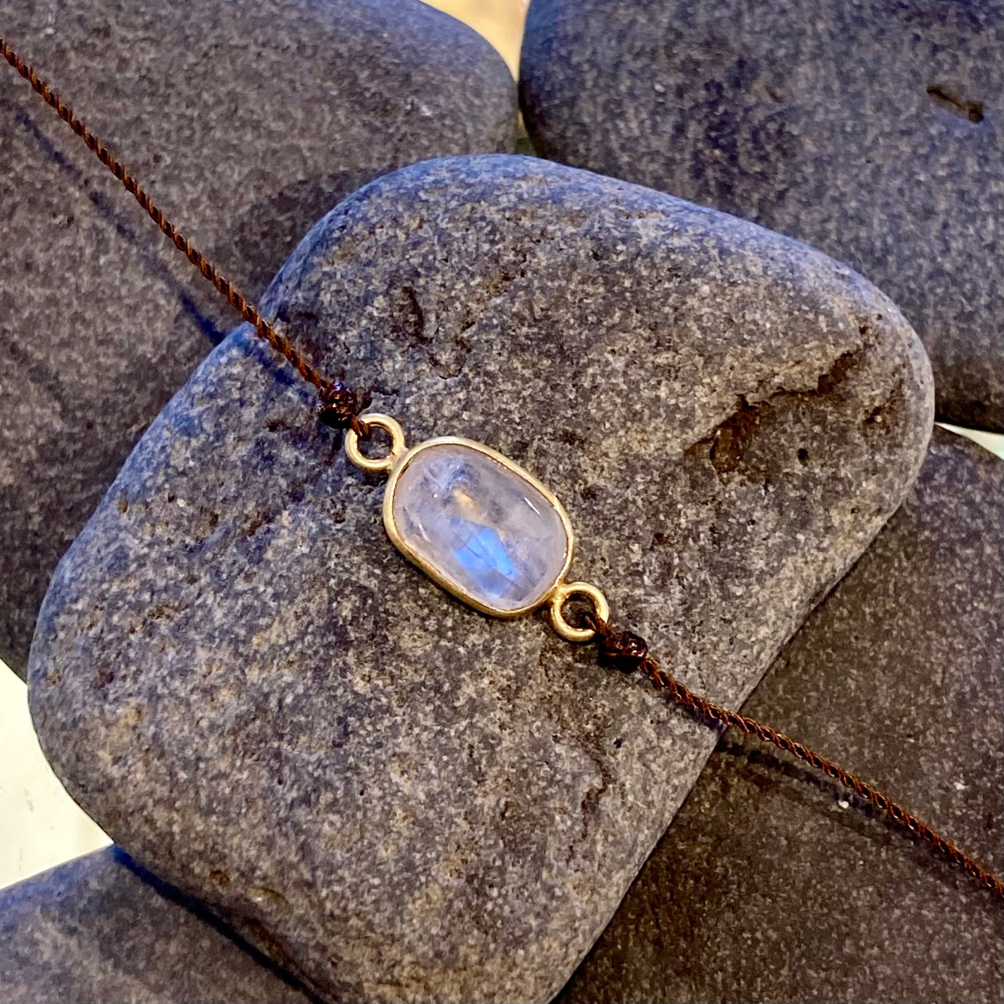 One of a Kind Rainbow Moonstone 18K Gold Bracelet