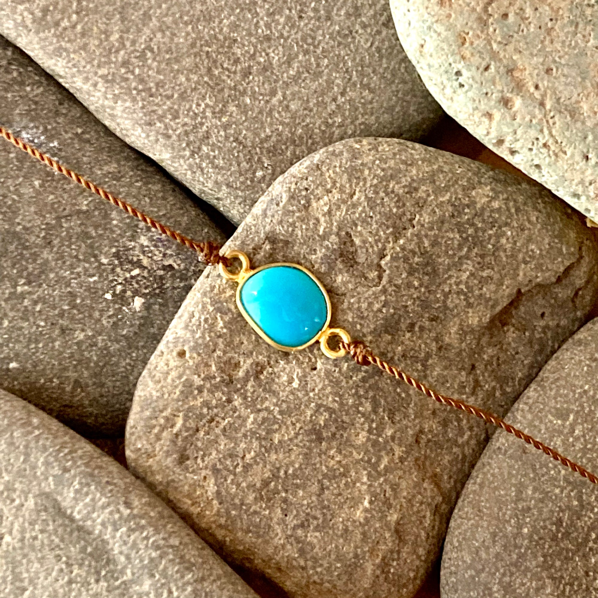 One of a Kind Sleeping Beauty Turquoise Cabochon 18K Gold Bracelet